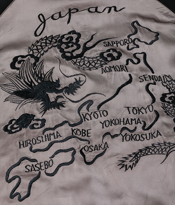 1950年代後期に港商商会(テーラー東洋の前身)が米軍からの依頼で製作し、アラスカ基地のPX(基地内の売店)で販売されていたスカジャンを再現。ヴィンテージ市場においてこのような通称「アラスカジャン」は非常に希少で、特に「稲妻と白熊」の絵柄は人気が高い。袖の3本ラインなど、アセテート生地のアラスカジャンに見られる仕様を忠実に復刻した。